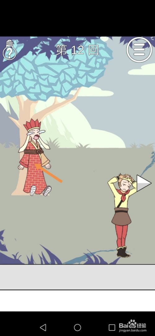 第12关先点击标的目的右箭头到右边去。
