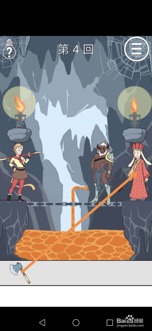 第4关先点击师父旁边的斧头,获得斧头后,将斧头拖动到师父身上。