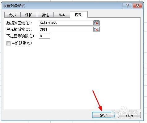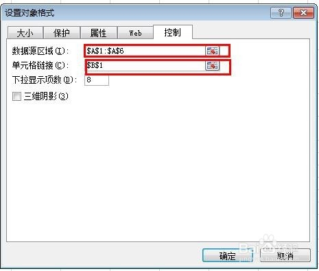 按本身需要,设置数据源区域(好比:A1-A6)、单位格链接(B2)。