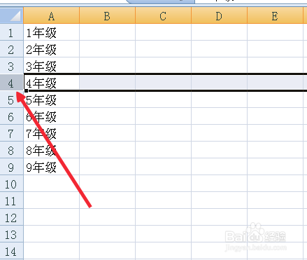 我们把鼠标放在需要插入行数字4上,选中第四行,如图。