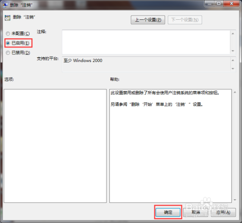 勾选对话框中的“已启用”,并点击“确定”按钮。