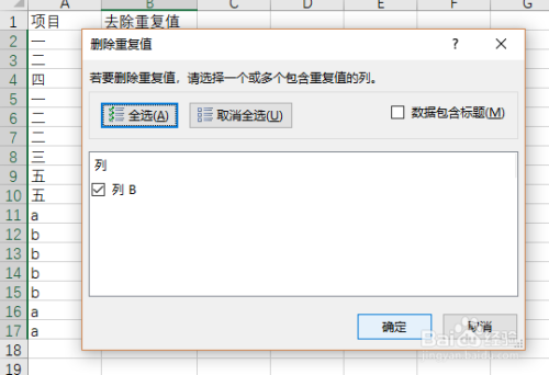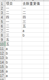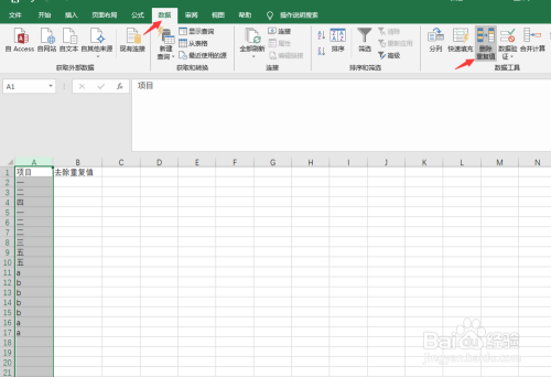 如图示,项目名称反复呈现,为了精简,可以删除反复值
