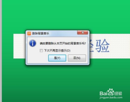 第四步:如下图所示,弹出“删除布景音乐”对话框,单击“是”。