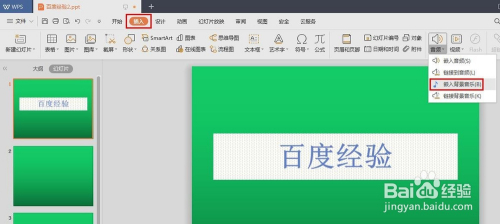 若是想要再次插入布景音乐,在菜单栏“插入”中选择“音频--嵌入布景音乐”选项。