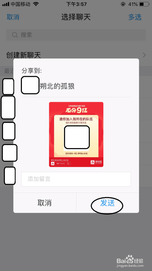 然后生当作二维码邀请给老友界面临话框,在对话框中点击“发送”按钮。