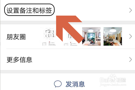 此外还有别的一种新建标签的方式,那就是直接在通信录中找到某个老友头像,进入到其小我中间页面然后点击“设置备注和标签”,然后在新的页面里点击标签下方的空白区域,最后在添加标签界面输入需要建立的标签名称即可;