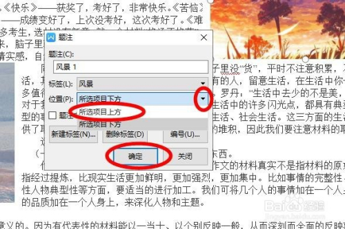 回到“题注”对话框,单击这里的“下拉箭头”,选择“所选项目上方”,选择完当作单击“确定”