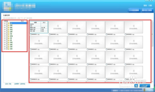 扫描完当作之后,可以在左侧选摘要找回文件的格局类型,点击格局类型右侧可以看到全数可找回文件的缩略图,缩略图的查看可以精确定位需要找回的文件。
