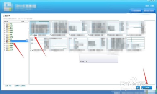 好比要恢复xls表格文档,右侧查看缩略图为第一个需要恢复并完当作勾选,点击下一步。