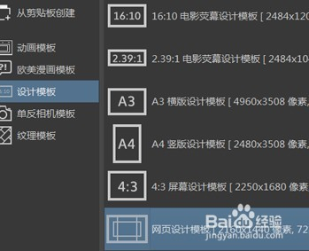 设计模板是专门为设计者供给的,设计上常见的尺寸,好比网页尺寸、a4尺寸和屏幕4:3尺寸等等。