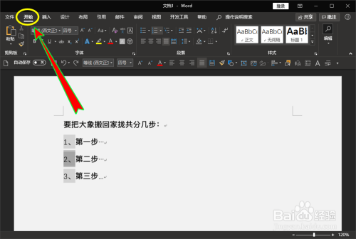 找到后,我们将鼠标光标定位到我们要点窜的肇端编号值后,或者选中要点窜肇端编号的文字内容,也可以选中要点窜肇端值的编号值,然后在顶部菜单栏找到“起头”菜单。