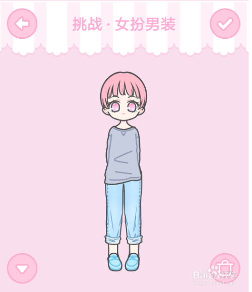 随后就会进入关于此次第20关女扮男装的申明,此次小仙女是要一改以往的形象,需要把本身装扮给一位男生,需要选择有男生元素的衣服,挑战此次的脚色饰演,我们快来给她出出本家儿意吧。