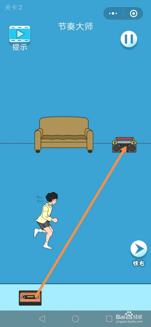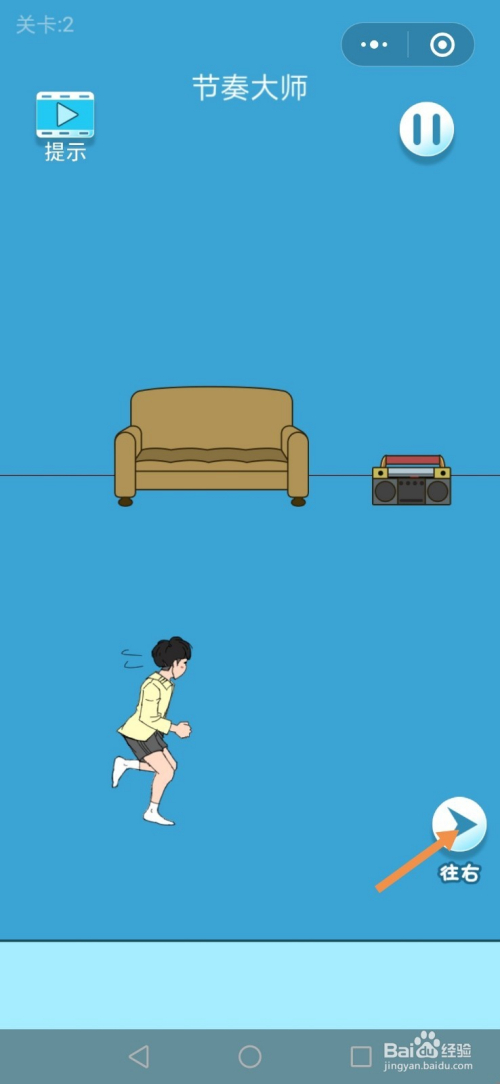 第2关先点击标的目的右箭头进入右边的房间。