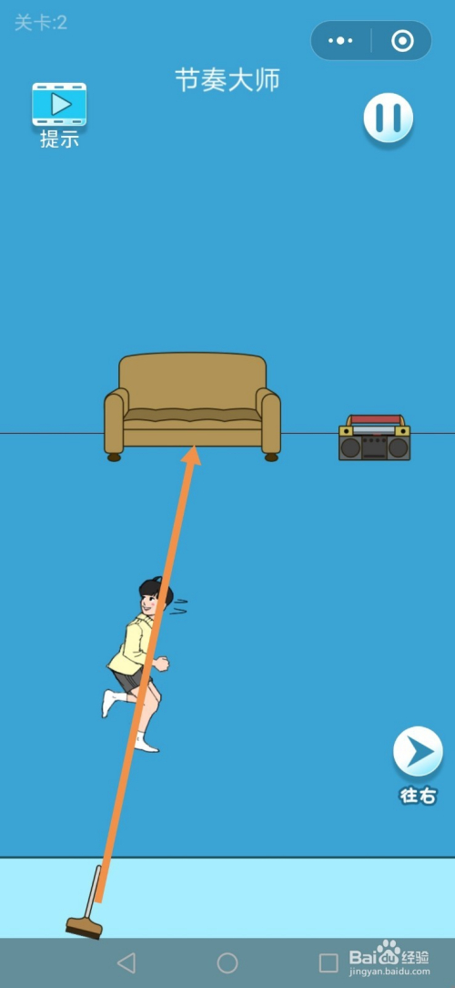 在右边房间里,点击靠在墙壁上的扫把,然后点击标的目的左箭头进入左边的房间。