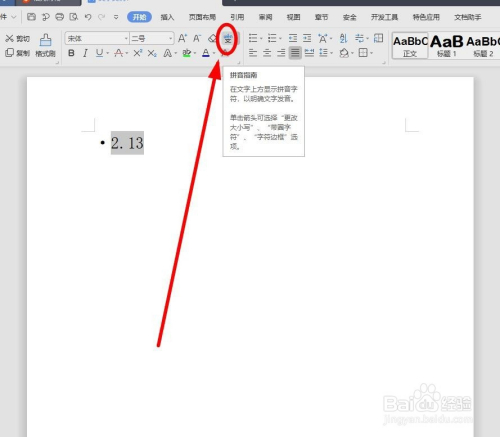 选择单击“起头”选项卡中的“拼音指南”菜单项,打开“拼音指南“对话框