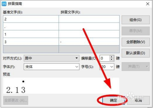 在“拼音指南”对话框,把光标放置在“3”对应的拼音文字后面的位置,点击鼠标右键"粘贴”,或者按下组合键把“·"粘贴到拼音文字的窗口中