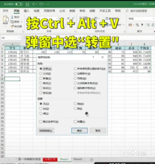 第五步:若是不想利用快捷键进行操作,也可以在粘贴的时辰选择点击鼠标右键,找到选择性粘贴,然后进行“转置”操作。