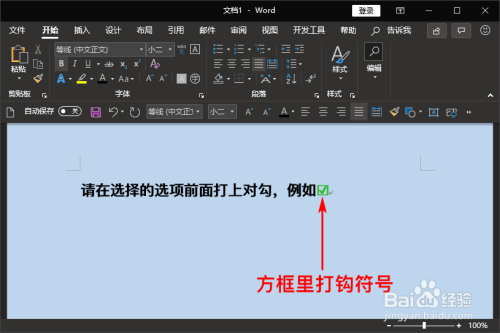 接着我们同时单击键盘上的“Alt”键+字母“X”键,这样文档中的数字“2611”就酿成本身想要的“方框里打钩符号”啦。如图所示: