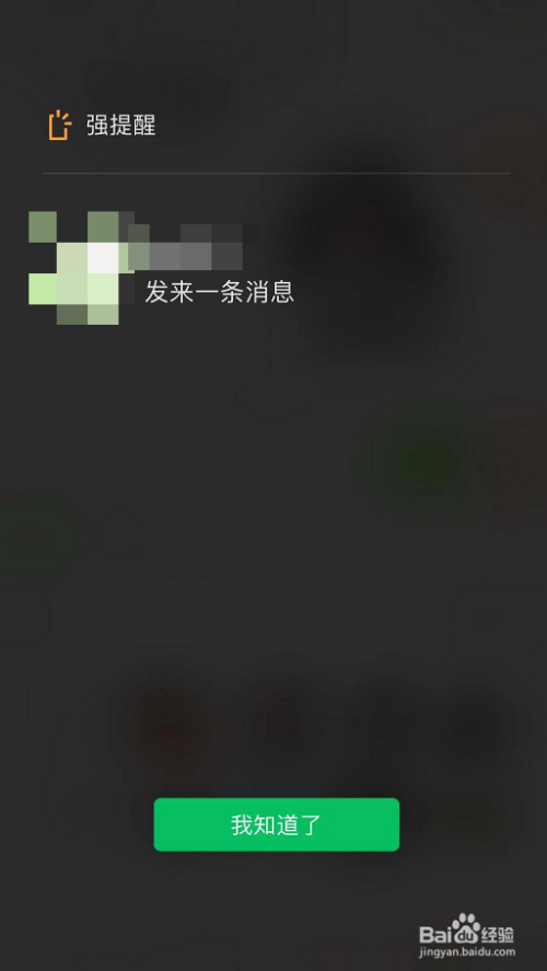 即使在后台状况下,也是会显示“强提醒”,打开微信后是全屏的提醒。
