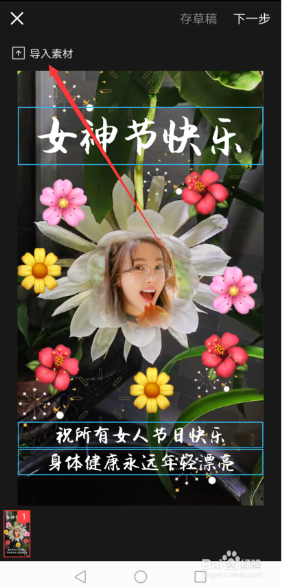 在打开的好景不常女人花建造界面里,直接点击左上角的【导入素材】,如下图所示。