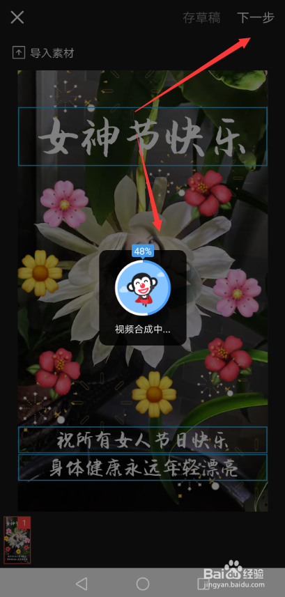 添加好照片后,并编写上面的文字,然后直接点击右上角的【下一步】,如下图所示。