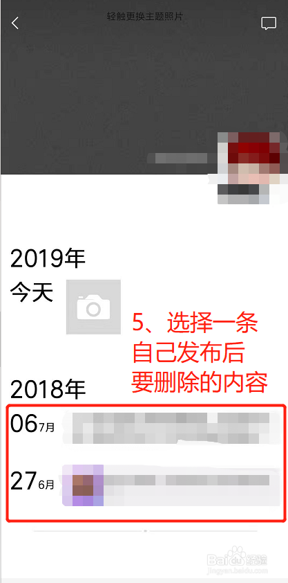 点击内容进入后,点击箭头指标的目的的“删除”功能,即可将该条朋友圈内容删除