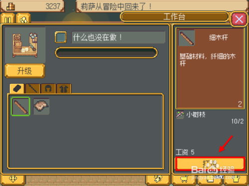 回家后首先在工作台将树枝合当作细木杆,需要做2个,如下图所示。