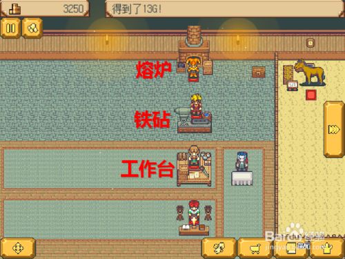 然后到熔炉那边将采来的铁矿石冶炼当作铁锭,1个即可。