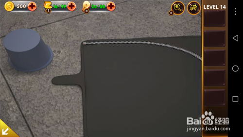 点击地面中心的黑布,将旁边的塑料桶移开,掏出里面的灯胆。再点击右面的桌子,将上面的布和抽屉打开掏出里面的电闸和拉锁头。