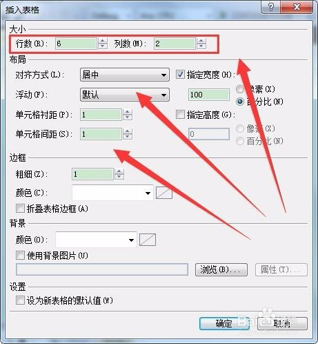 设置好表格的行列数,对齐体例为居中,设置好其他参数。