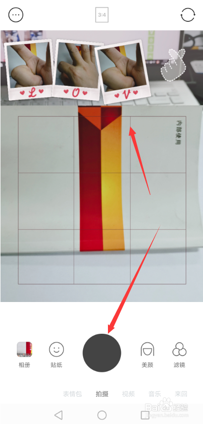 选择点击这个四连拍特效后,在上面就会显示出四连拍的手势了,如下图所示。