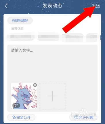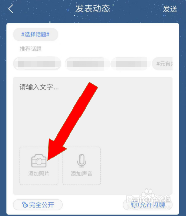 返回发布动态页面,完当作文字编纂今后,点击发布即可发布语音图片