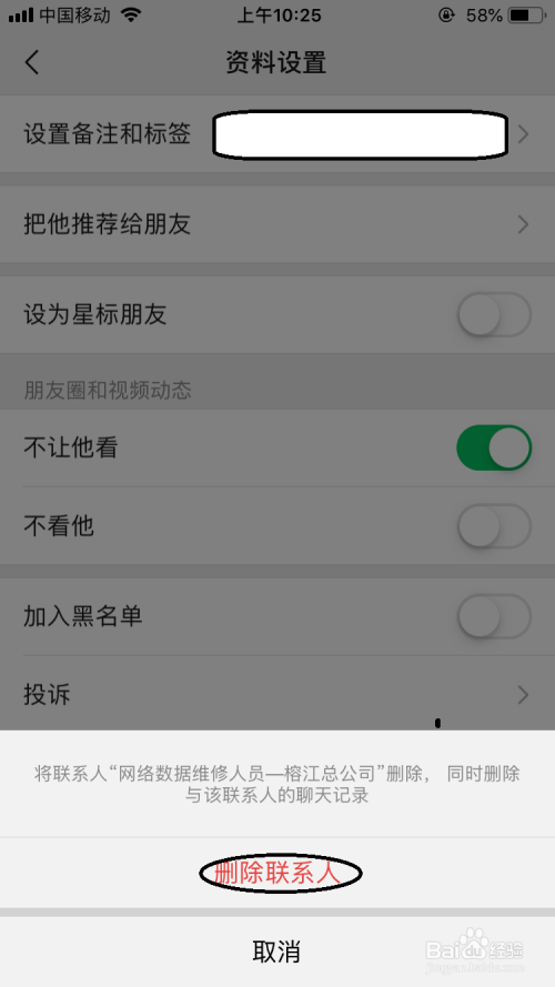 此时再弹出警告选项中选择“删除联系人”选项。