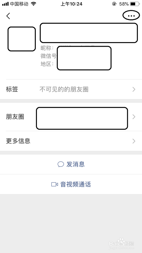 然后点击老友后进入到老友的具体信息界面中点击右上角的“三个点”按钮。