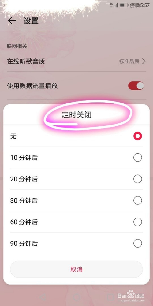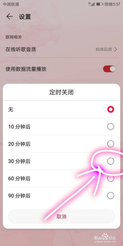 若是我们想要在半小时后主动封闭正在播放的音乐,我们就选择30分钟后的选项即可;