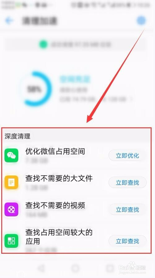 接着,进行深度优化,可以优化微信、大文件、视频、较大的应用。