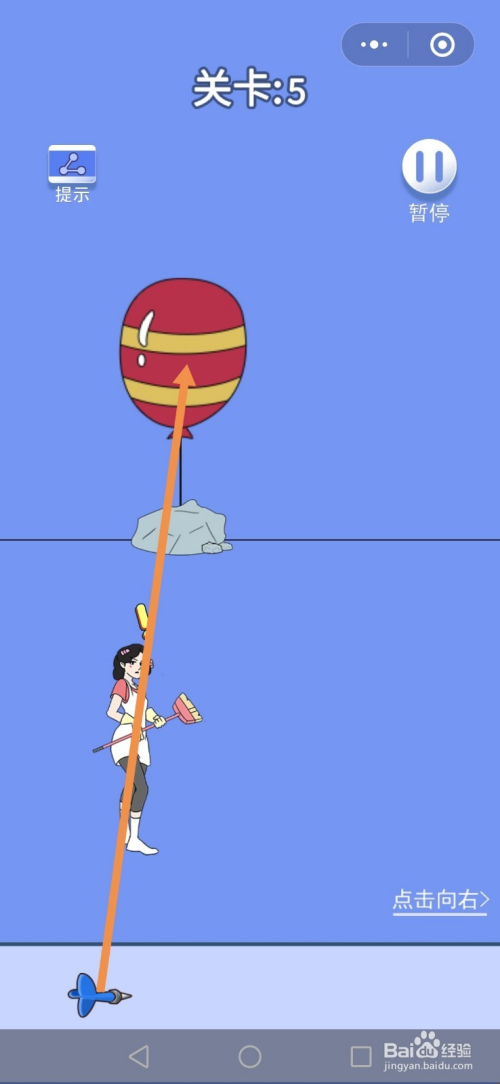 在左边房间里,点击点击标的目的左进入最左边的房间。在最左边房间里,将飞镖拖动到气球上。