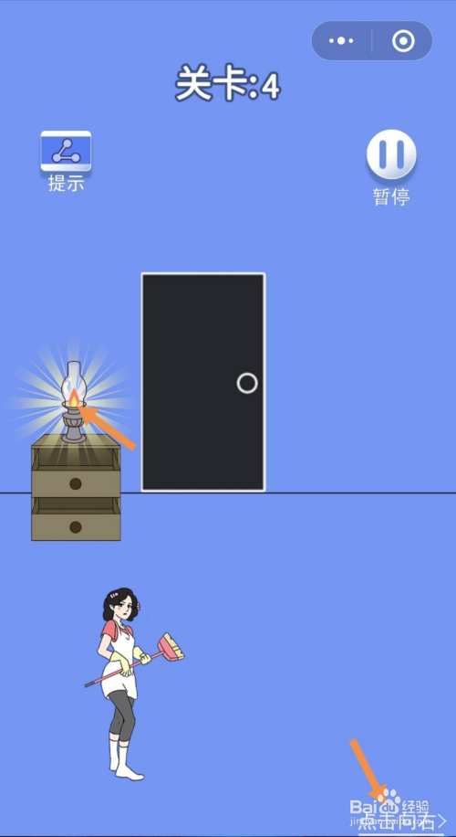 油灯点燃后,点击油灯,然后点击点击标的目的右进入右边的房间。