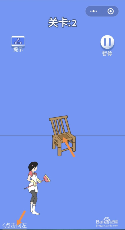 在右边房间里,点击竹椅,然后点击点击标的目的左进入左边的房间。