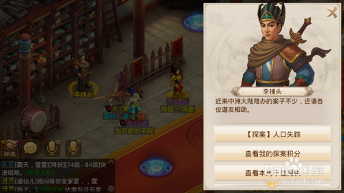 首先我们登录我们的问道手游,去天墉城官府找我们的李捕首级头目取使命,本周使命为生齿掉踪,如下图所示。