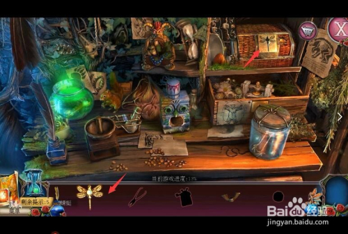 接着我们用刀割断绳索拿到蜻蜓,并把蜻蜓安装到箱子上后打开箱子拿到印章戒指和小铰剪,如图所示;