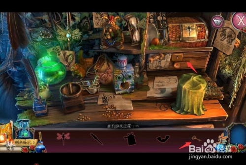 我们点击小雕像后把印章戒指安装好拿到研磨器抽屉,如图所示;
