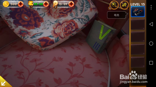 点击右面的沙发,将上面的电池拾取起来并记住数字的颜色。