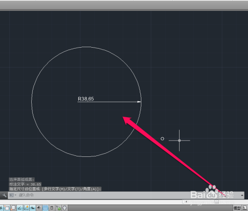 选择好号令的对象后,找到圆心,标注圆的半径。