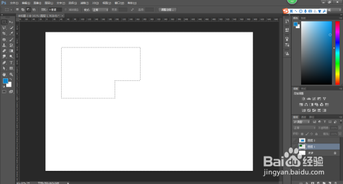 为了演示两个图层相减,画第二个选区时与第一个选区有重合。