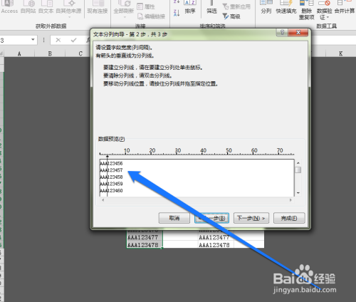 点击完成按钮后,再返回到Excel中,发现字母和数字已经分隔。