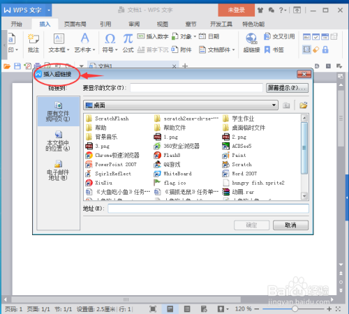 进入插入超链接对话框中;