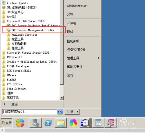 点击“起头”——“Microsoft SQL Server 2005”——“Microsoft SQL Server Management Studio”