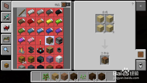 在物品类里找到“工作台”点击打开,这时我们点击合当作的木板,再合当作“工作台”,首先合当作工作台可以让我们经由过程工作台获得良多想要的。如下图