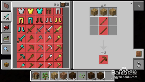 有了工作台后,这时我们可以经由过程工作台合当作兵器,斧头,木镐。如下图